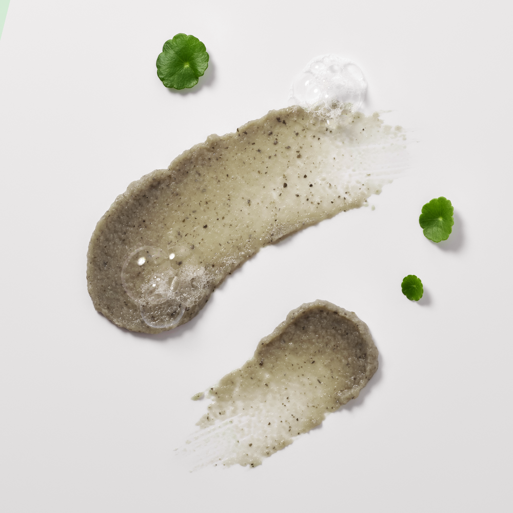 Natürlich gewonnene Peeling-Puder wie Camellia-Sinensis-Blattpulver, Centella-Pulver und Microcrystalline Cellulose sorgen für ein sanft mechanisches Peeling, ohne die Haut zu reizen. Klärende Pflanzenextrakte aus Teebaum, Hamamelis, Neem-Blatt und -Blüte, Grüntee, Kastanie, Kaffeebohne, Rotwurzel (Polygonum), Trauben und Salbei wirken talgregulierend, antibakteriell und unterstützend bei Unreinheiten.